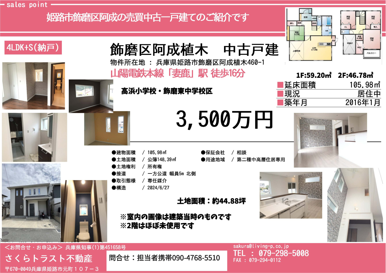 | 備考 | 2022年1月リフォーム クロス、床の貼替、壁の塗装、畳表替え、障子張替え、洗面キッチン湯沸器新調 問合せ担当:山本携帯まで 090-4768-5510 |